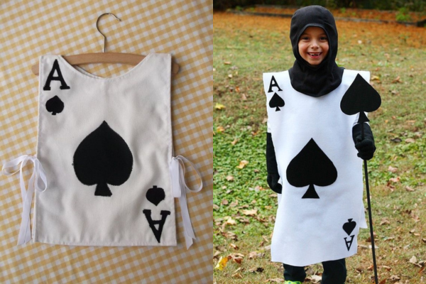 - Megkötős (ahogy a kártyalapos jelmeznél): szalagot vagy pántot varrsz az oldalakra